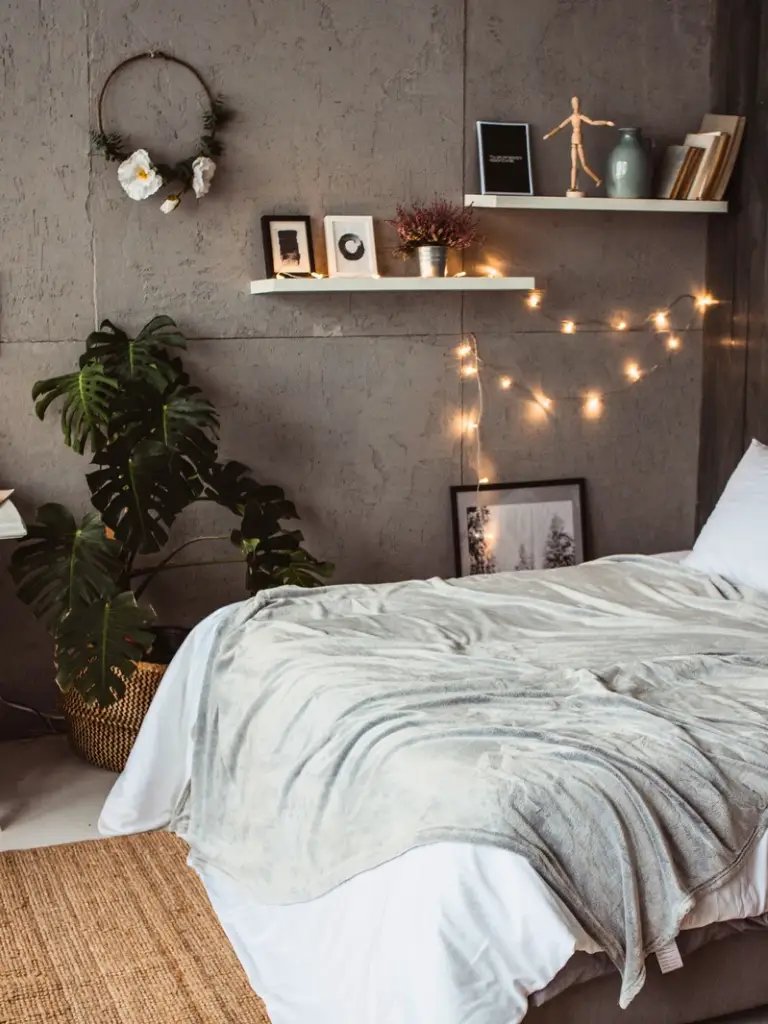 One of the easiest and most inexpensive ways to add charm to a Boho bedroom is with fairy lights or string lights.