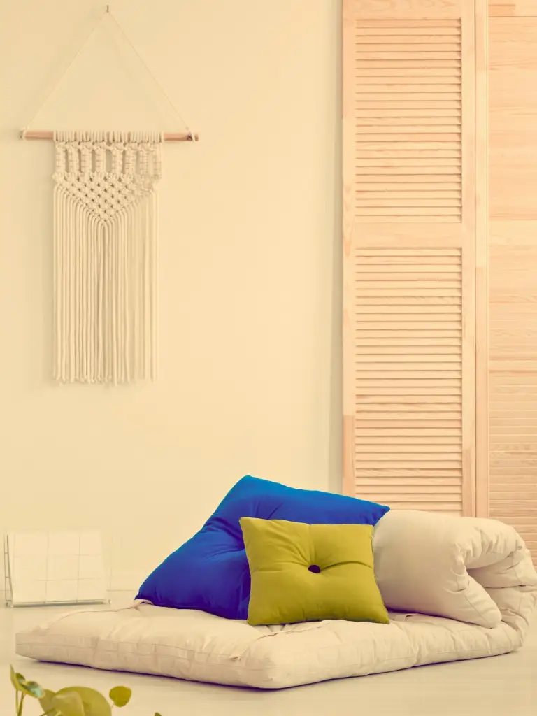 If hanging a chair isn’t an option, a stylish floor cushion or beanbag can also give you that cozy, Boho feeling.