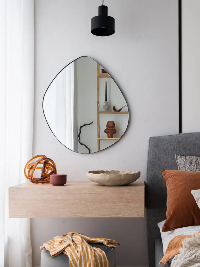 Mirrors with unique shapes or decorative frames (like sunburst or geometric styles) make great statement pieces and add a touch of whimsy.