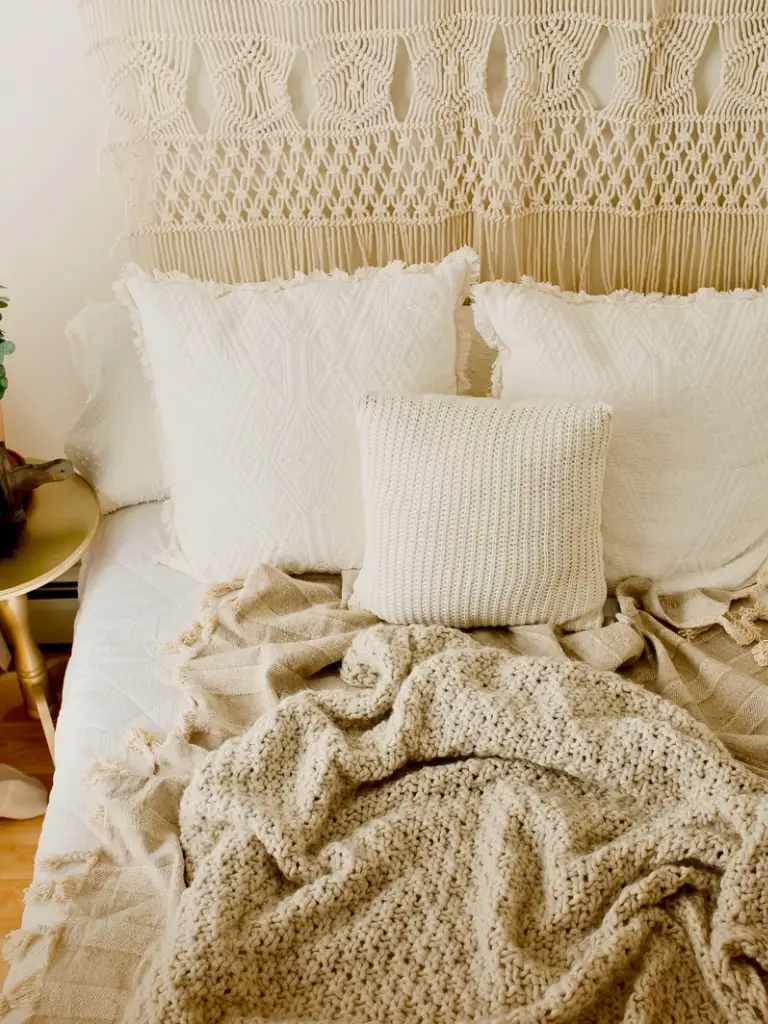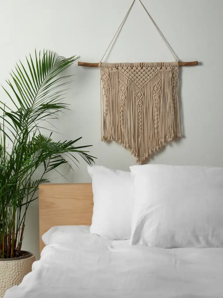 I hung a large macramé piece above my bed, and it immediately transformed the space.