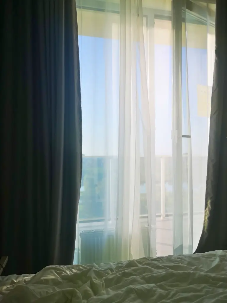 Start with a sheer white curtain to allow light in and then add a heavier drape for privacy and coziness.