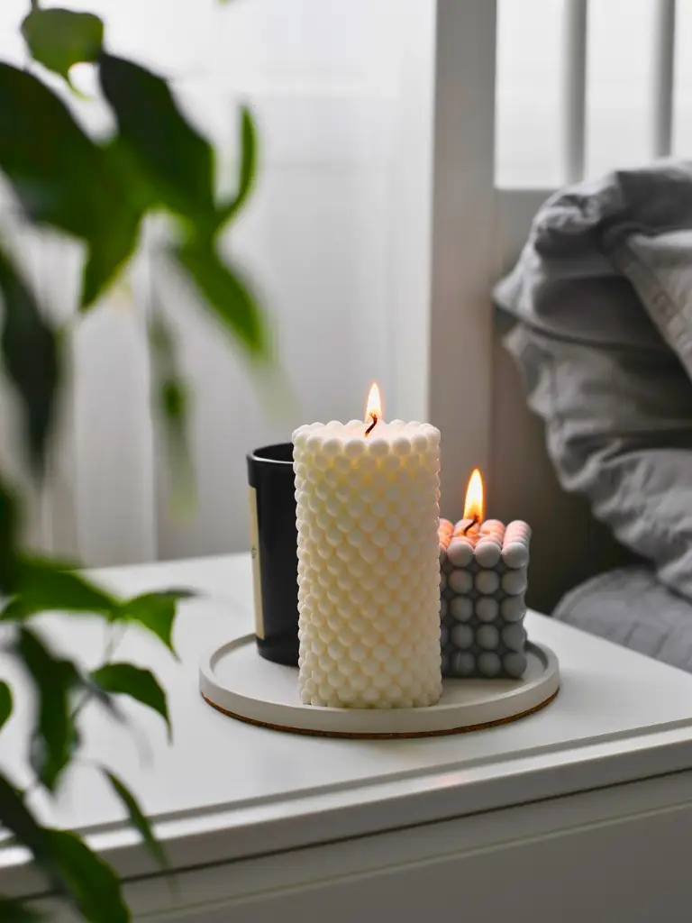 I created a set of simple clay candle holders, which add an earthy feel to the room.