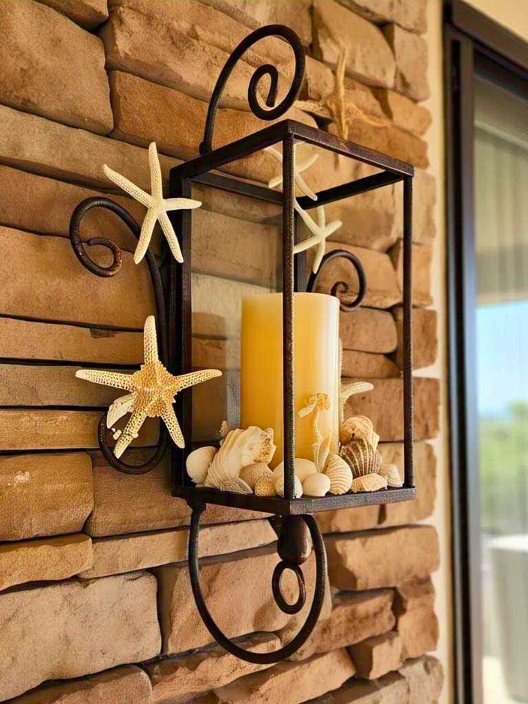 After a trip to the coast, I wanted to keep that vacation vibe alive. Enter: beachy sconces. Think distressed wood, starfish, and whitewashed finishes.