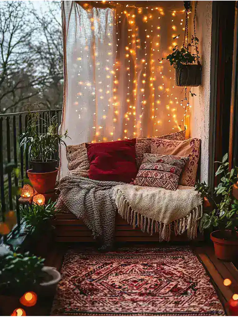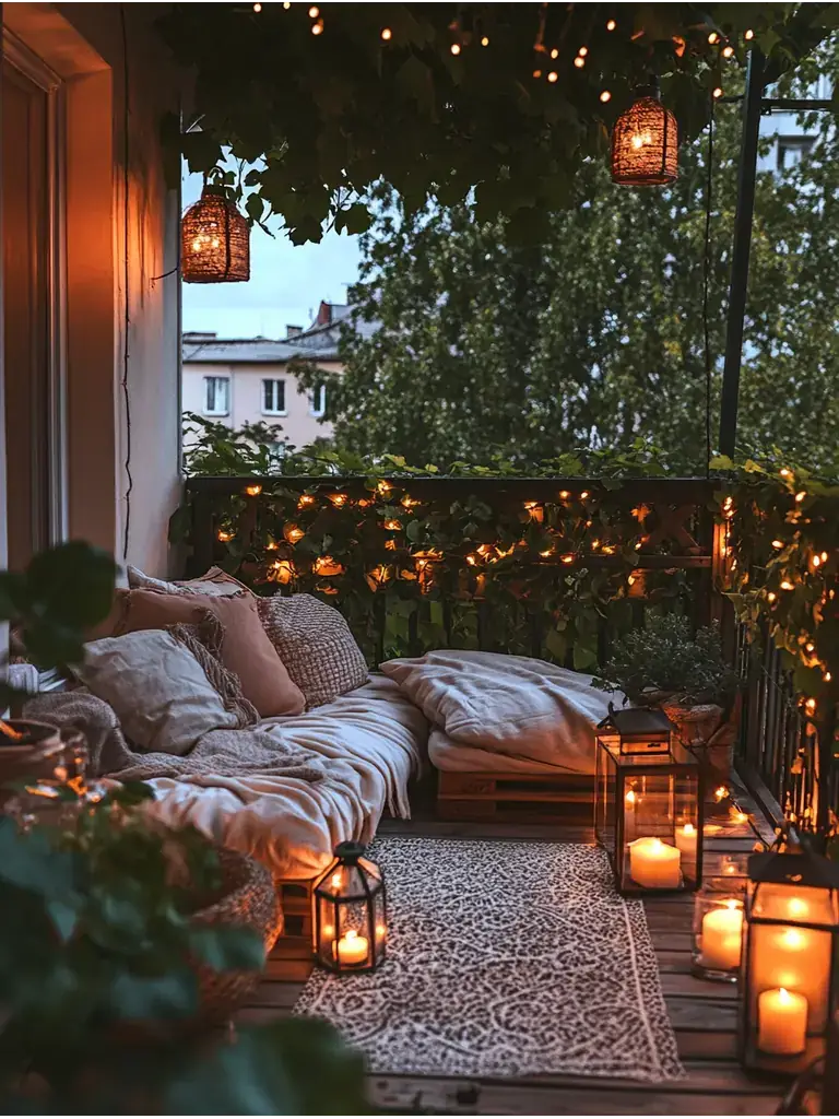 As you step onto your cozy balcony, take a moment to soak in the atmosphere you’ve created. The inviting seating beckons you to relax, while soft textiles wrap you in warmth.