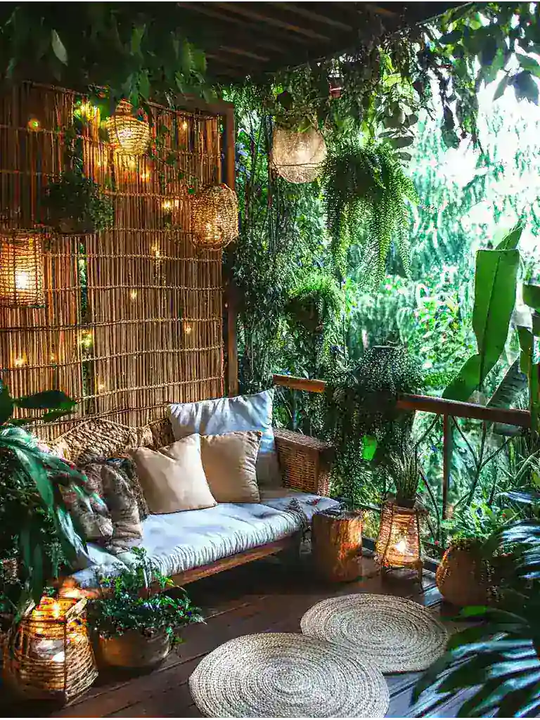 But wait—what’s that delightful scent? The greenery draws you in closer, hinting at nature’s embrace. With twinkling lights overhead, your oasis transforms as twilight approaches. So, are you ready to reveal your little sanctuary and enjoy every enchanting moment it offers?