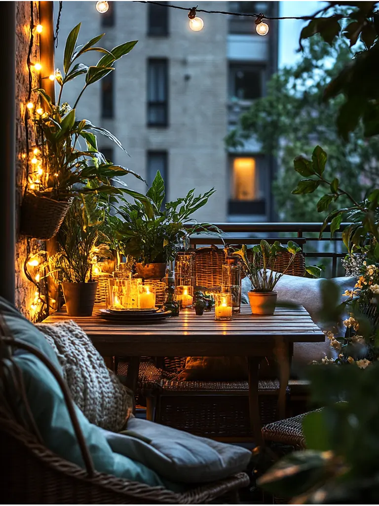 Add soft cushions and a warm throw to create a cozy atmosphere. Don’t forget string lights or lanterns for evening ambiance, transforming your balcony into a delightful dining oasis.