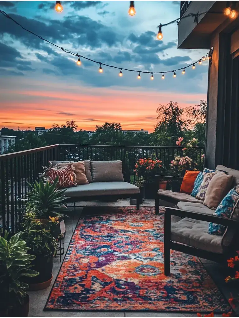 Outdoor rugs can transform your balcony into a cozy and inviting space. Choose durable outdoor rug materials like polypropylene or nylon to withstand the elements.