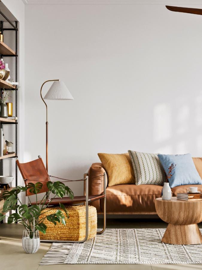 You don’t need a full rattan overhaul. A woven tray or a seagrass pouf can add that chill vibe.