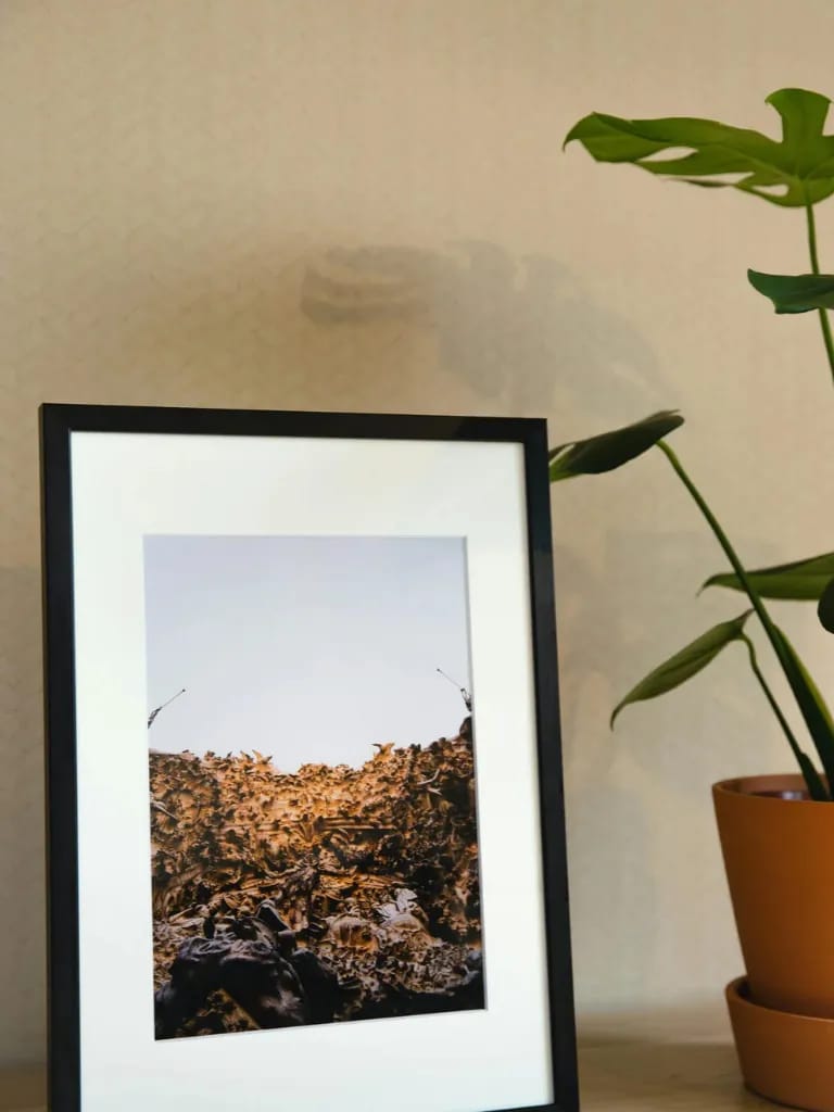 Print a black-and-white photo at home and pop it into a $2 thrift store frame.