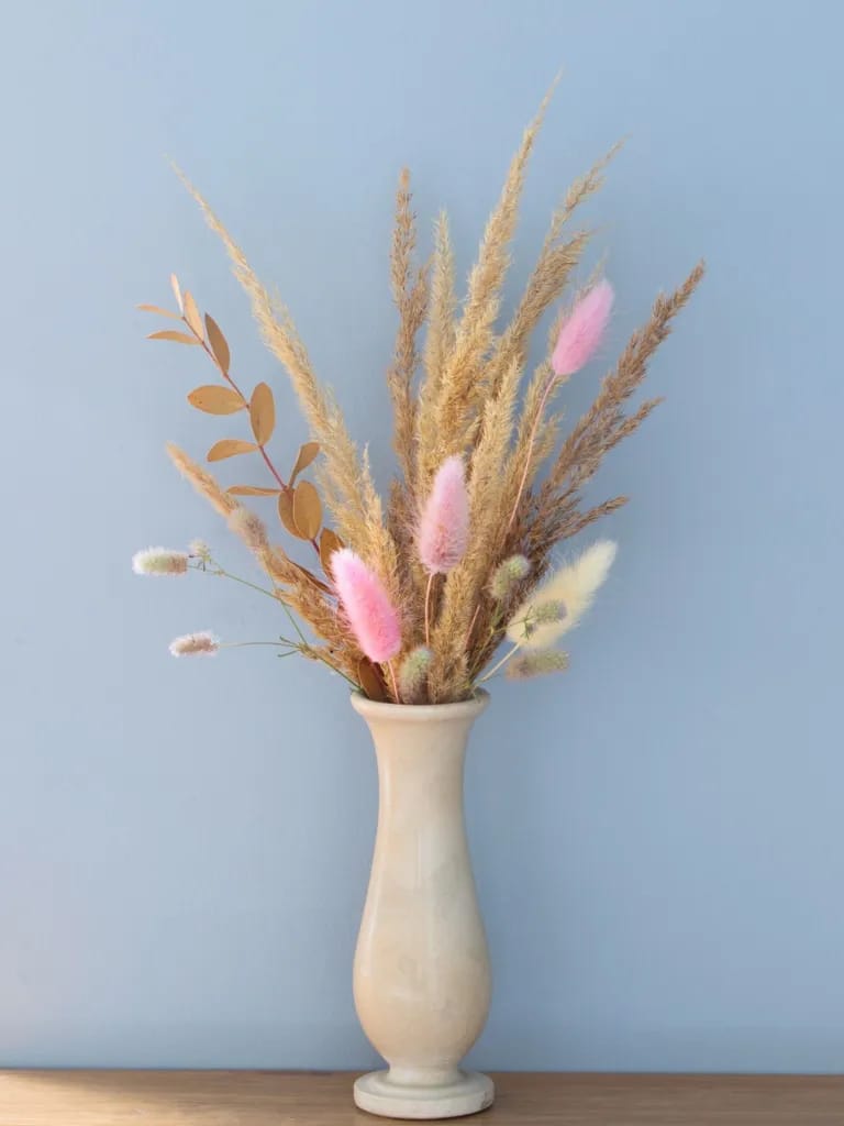 Fill it with dried pampas grass or leave it empty.