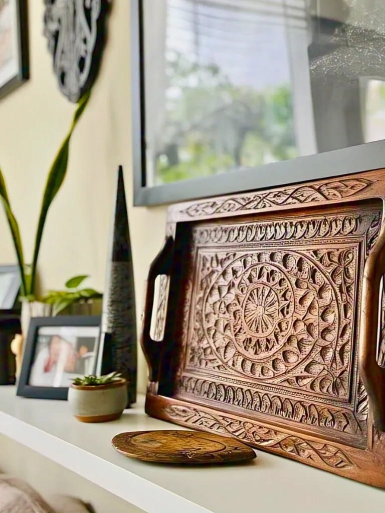 A geometric metal sculpture on my shelf added a cool, modern edge. It’s like art but doesn’t take up much space.