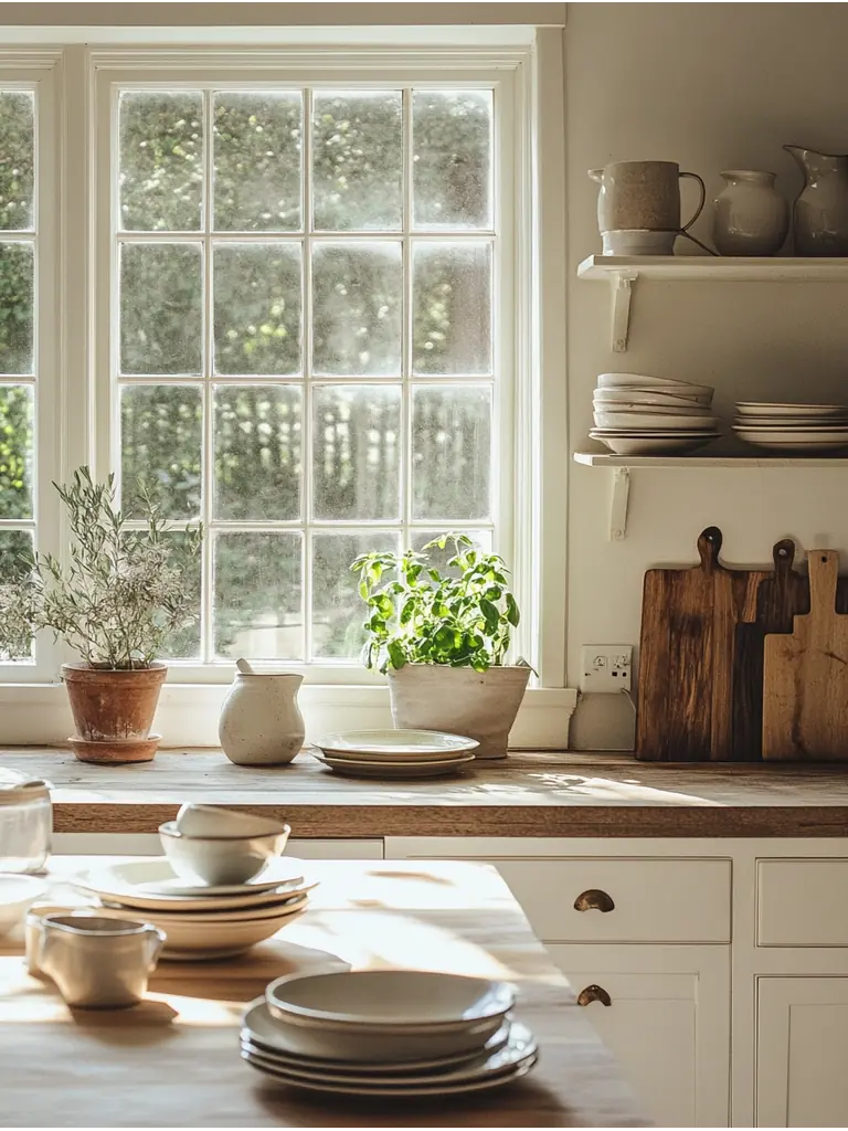 While open shelving can create an airy feel in your kitchen or living space, using it wisely is key to maintaining a minimalist farmhouse aesthetic. Focus on displaying only essential items or favorite pieces.