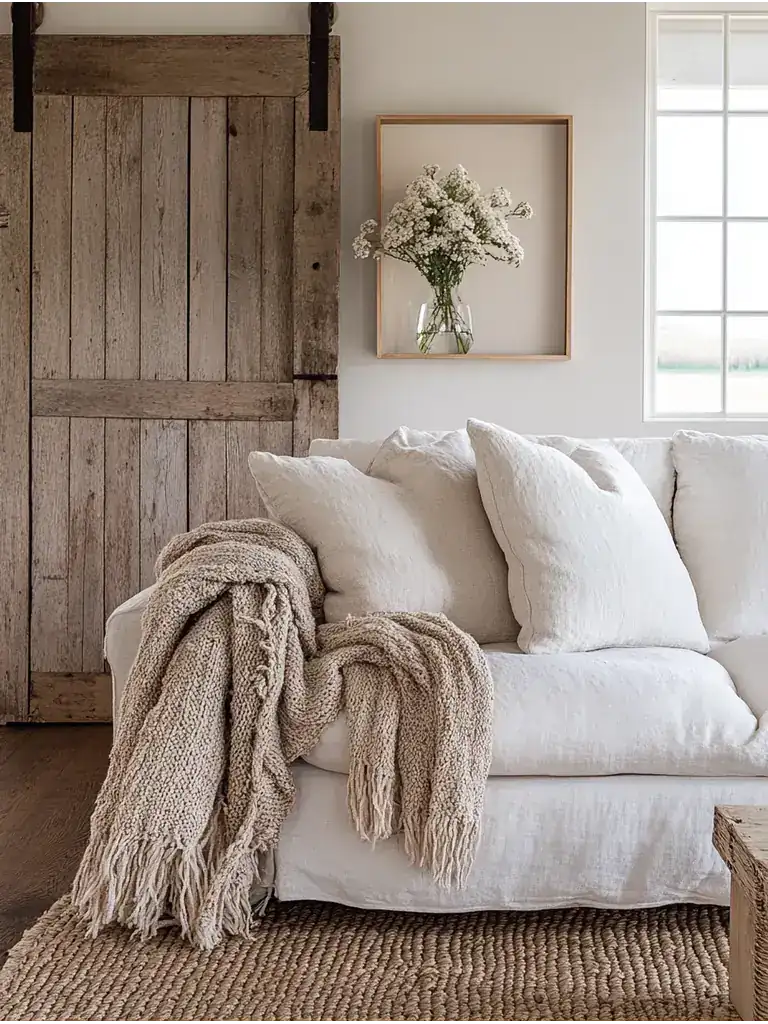 Creating cozy nooks can elevate the warmth of your minimalist farmhouse, especially after layering those soft fabrics. Arrange a comfortable chair with a plush throw and a small side table for your favorite book and a cup of tea.