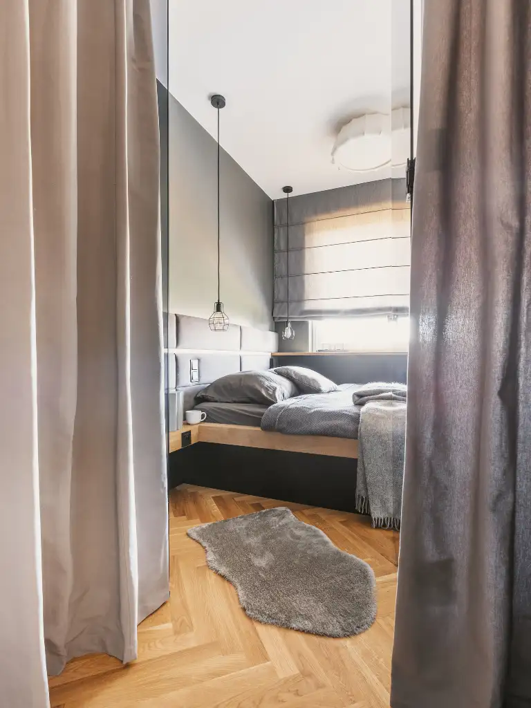 Choose blackout curtains if you love sleeping in or linen ones for a lighter, breezier look.