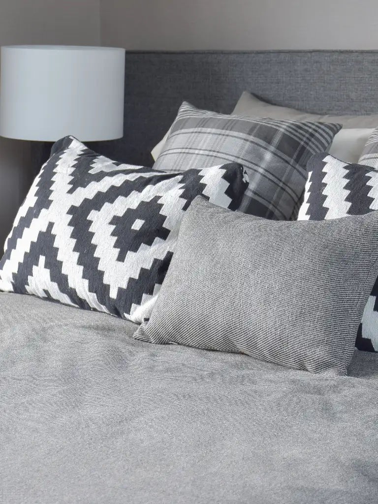 Mixing different shades and textures of grey pillows gave my bed a lot more depth.