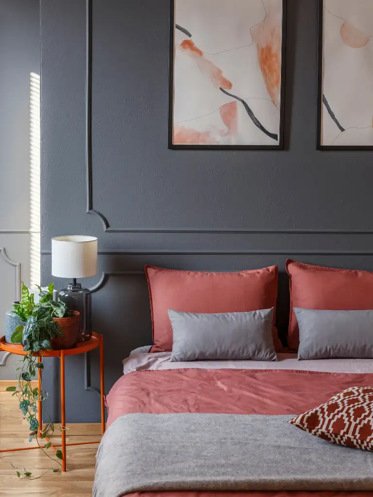 I did this behind the bed using a mid-tone grey, and it became the perfect backdrop for my pink bedding.