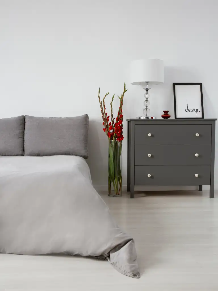 I added a grey side table and nightstand set, and it balanced the room beautifully.