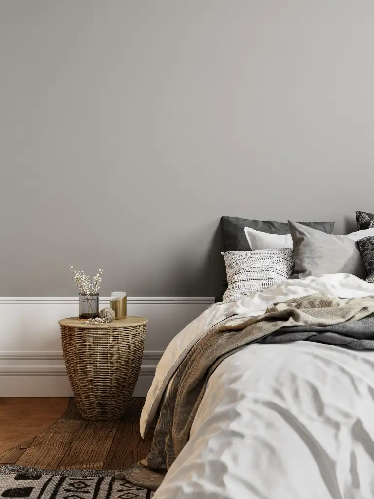 A simple grey throw draped over the end of your bed or chair adds just enough texture and softness to pull the room together.