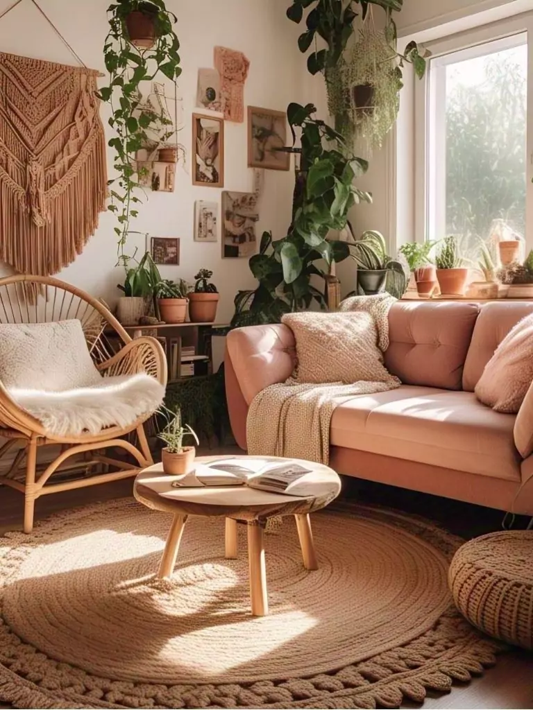 1. Boho Bliss: Pair Your Pink Couch with Natural Textures