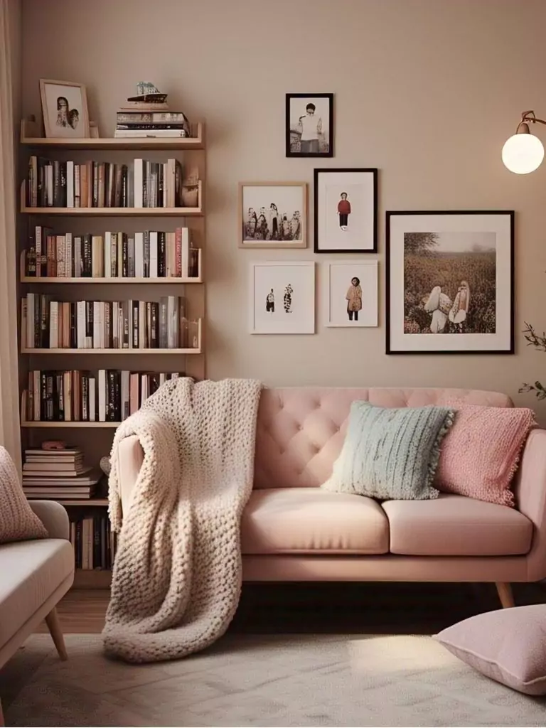 Even in smaller spaces, a pink loveseat can make a big impact. Create a cozy nook with plush cushions, soft lighting, and textured blankets to turn your living room into the ultimate retreat.