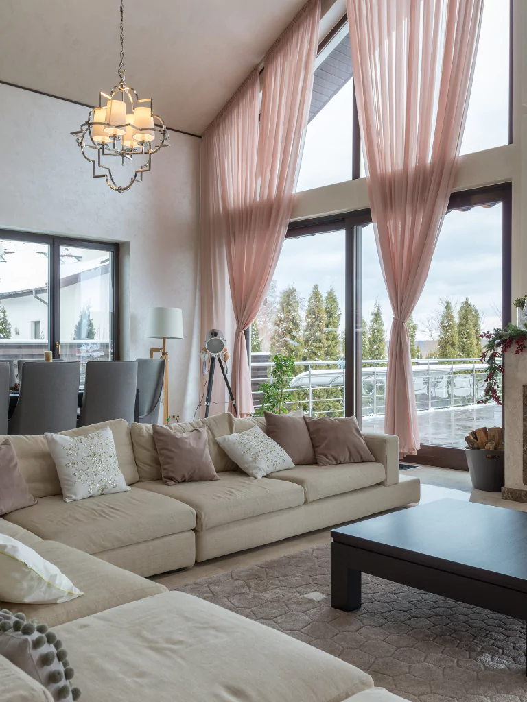 Dusty pink curtains offer a muted and elegant touch. They filter light softly, creating a cozy ambiance. Pair them with neutral walls and wooden furniture for a harmonious look.
