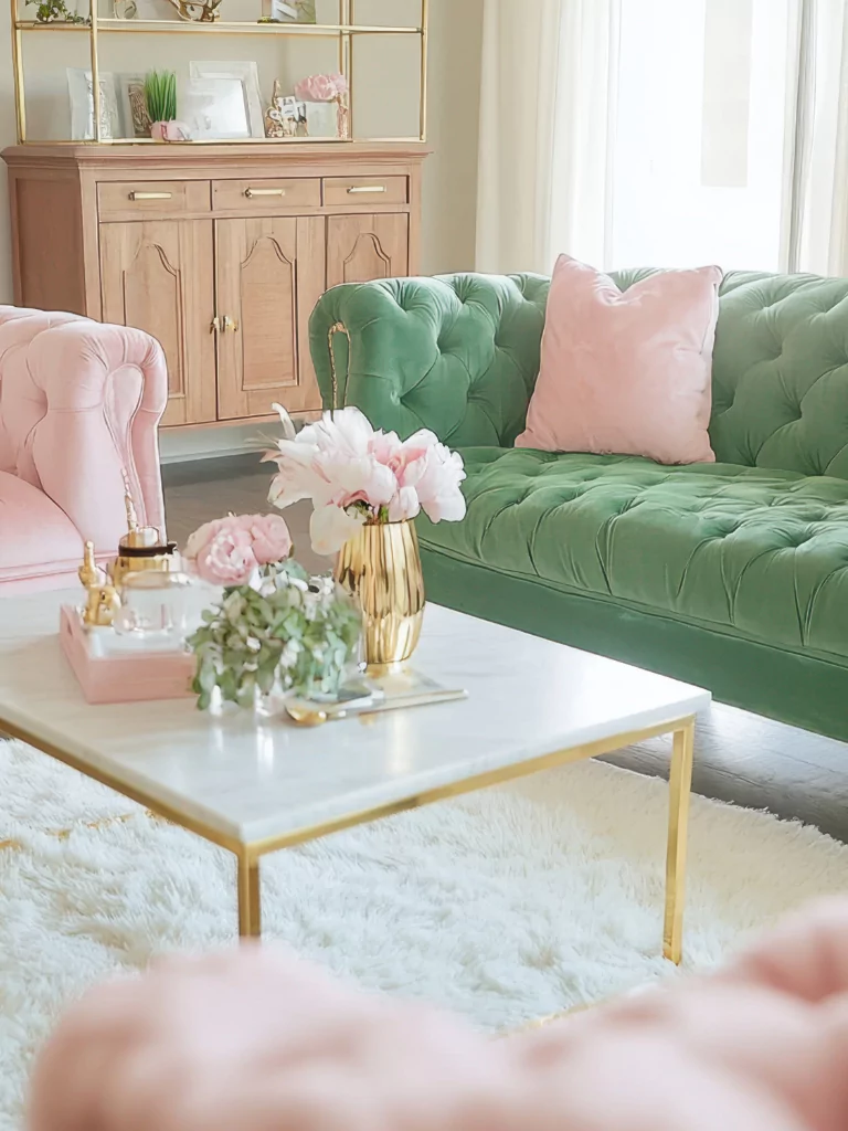 To maintain balance, distribute pink accents evenly throughout the room. Combine different shades and textures to add depth and interest. Mixing pink with metallics like gold or copper can enhance the elegance of the space, while pairing it with natural materials like wood can create a more relaxed, bohemian vibe.