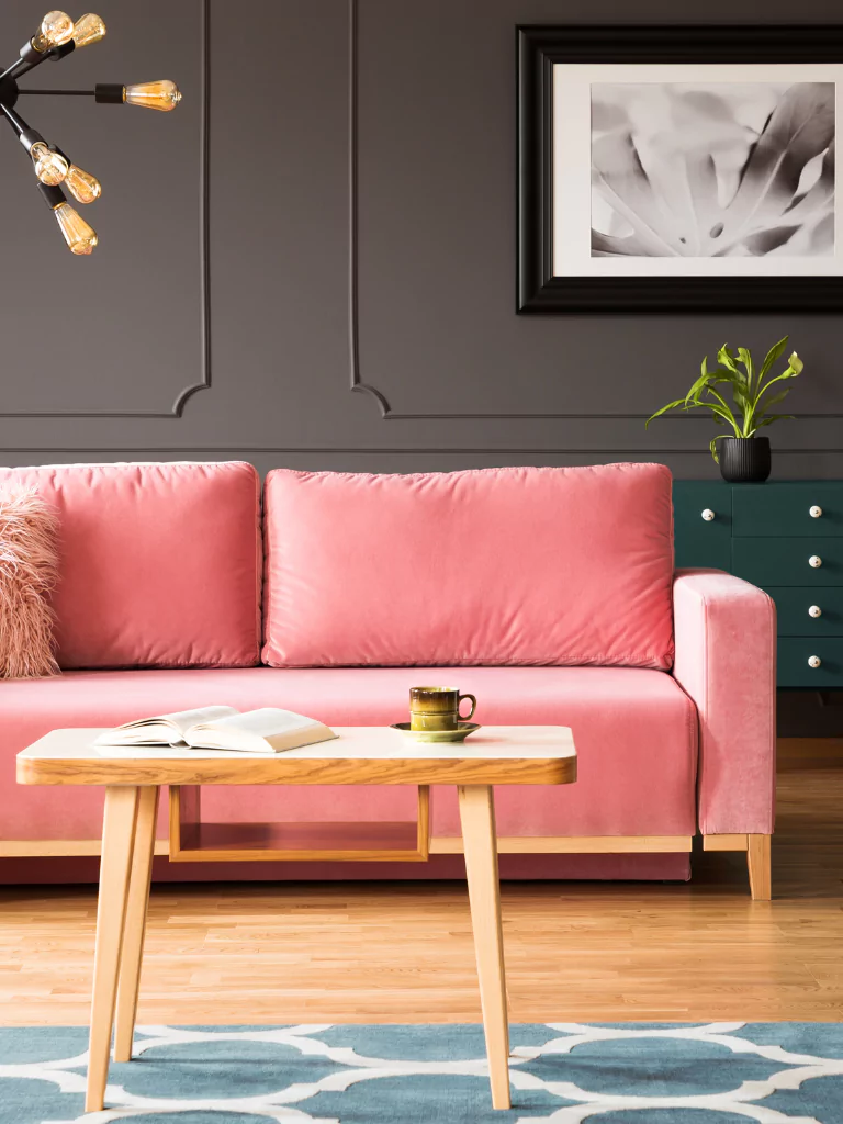A pink velvet sofa adds a touch of luxury and sophistication. The plush texture and rich colour make it a standout piece. Pair it with neutral walls and metallic accents to create a balanced and elegant space.