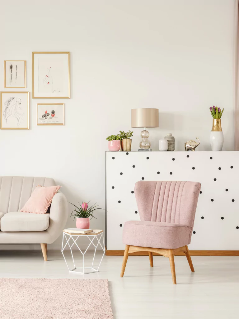 A pink armchair can serve as an eye-catching accent piece. Select a design that complements your existing furniture, whether it’s a modern silhouette or a vintage-inspired piece. Place it strategically to create a cozy reading nook or conversation area.