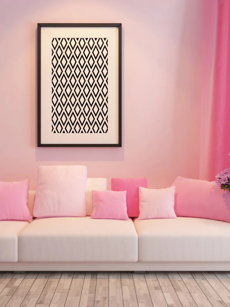 Combining white and pink creates a fresh and airy atmosphere. Use white as the base color for walls and larger furniture pieces, then add pink accents through rugs, cushions, and artwork. This combination works well in both modern and traditional settings, offering a timeless appeal.