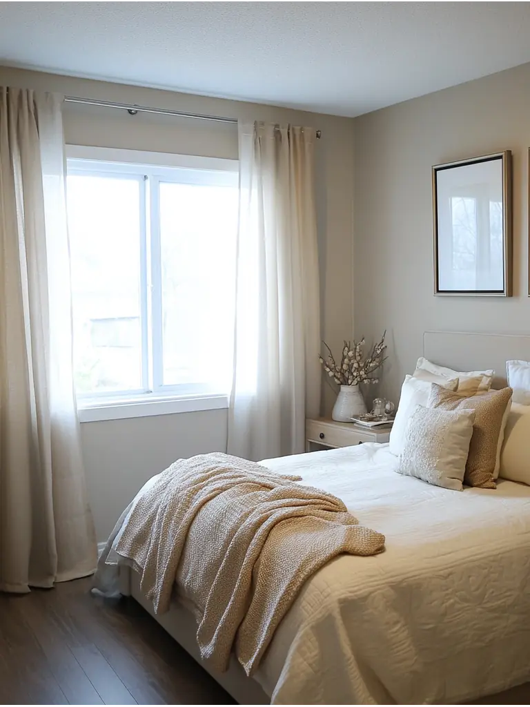 After setting the right mood with light and color, layering textures can add depth and interest to your small bedroom. Experiment with textile combinations like soft blankets, woven rugs, and plush pillows to create tactile layers.