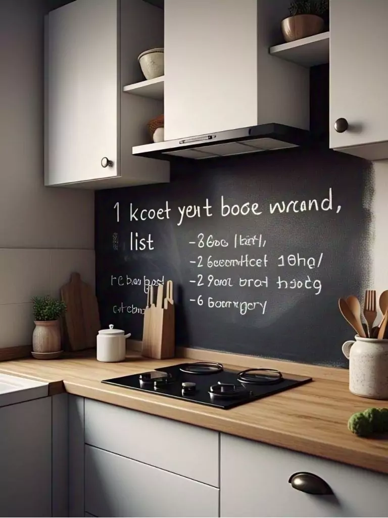 Chalkboard paint is inexpensive and easy to apply, available at most hardware stores. For a renter-friendly option, use a peel-and-stick chalkboard panel. This small kitchen idea on a budget doubles as apartment decor inspiration, allowing you to customize your tiny kitchen with handwritten notes or seasonal designs, making it a dynamic and charming addition.
