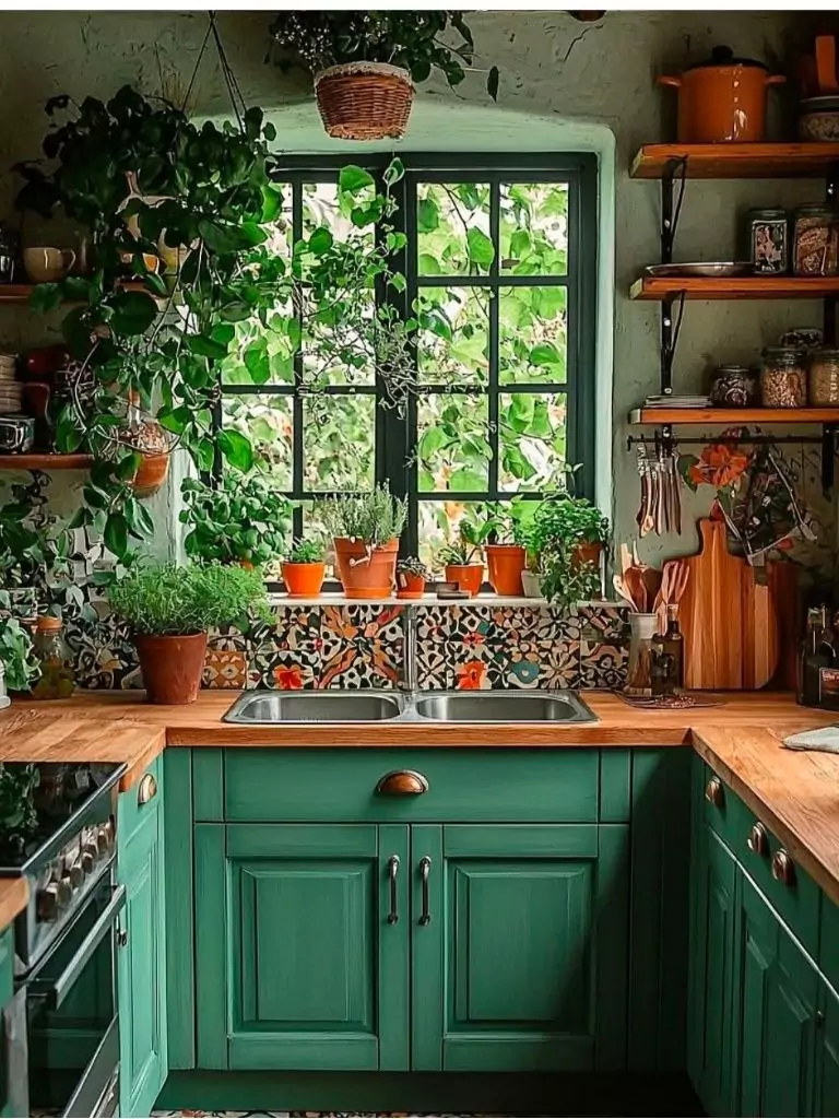 For a bold twist, create a mini vertical garden with wall-mounted planters or a hanging herb rack. Plants are affordable at local nurseries or grocery stores, and they double as ingredients for cooking. This small kitchen idea on a budget adds life and color to your tiny kitchen, ensuring it’s a space you love spending time in.