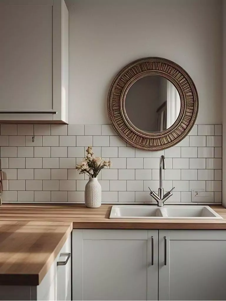 Choose a mirror with a decorative frame to match your small kitchen decor, or go minimalist with a frameless design for a modern look. Thrift stores and discount retailers often have affordable options, making this a kitchen on a budget win. By incorporating a mirror, you’ll enhance the sense of space and create a stunning focal point in your dream apartment decor.
