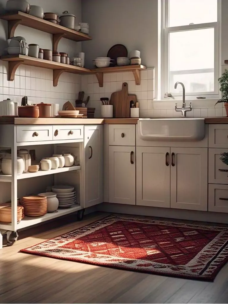 A well-chosen rug can transform your small kitchen decor by adding warmth and personality to your cozy kitchen. Opt for a washable, low-pile rug in a bold pattern or soothing neutral to complement your apartment decor inspiration.