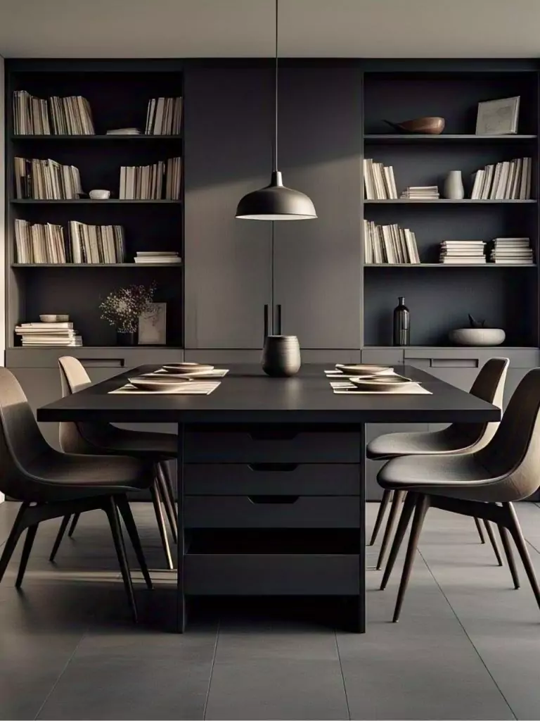For practicality, a black dining table with built-in drawers or shelves can be both stylish and smart. It’s great for small apartments or family homes.