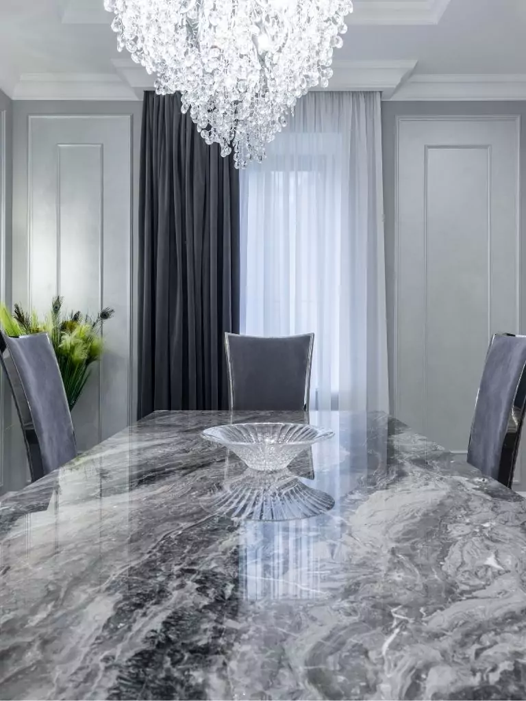 A black marble dining table screams luxury and sophistication. With its natural veining and polished finish, it becomes the statement piece of the room.