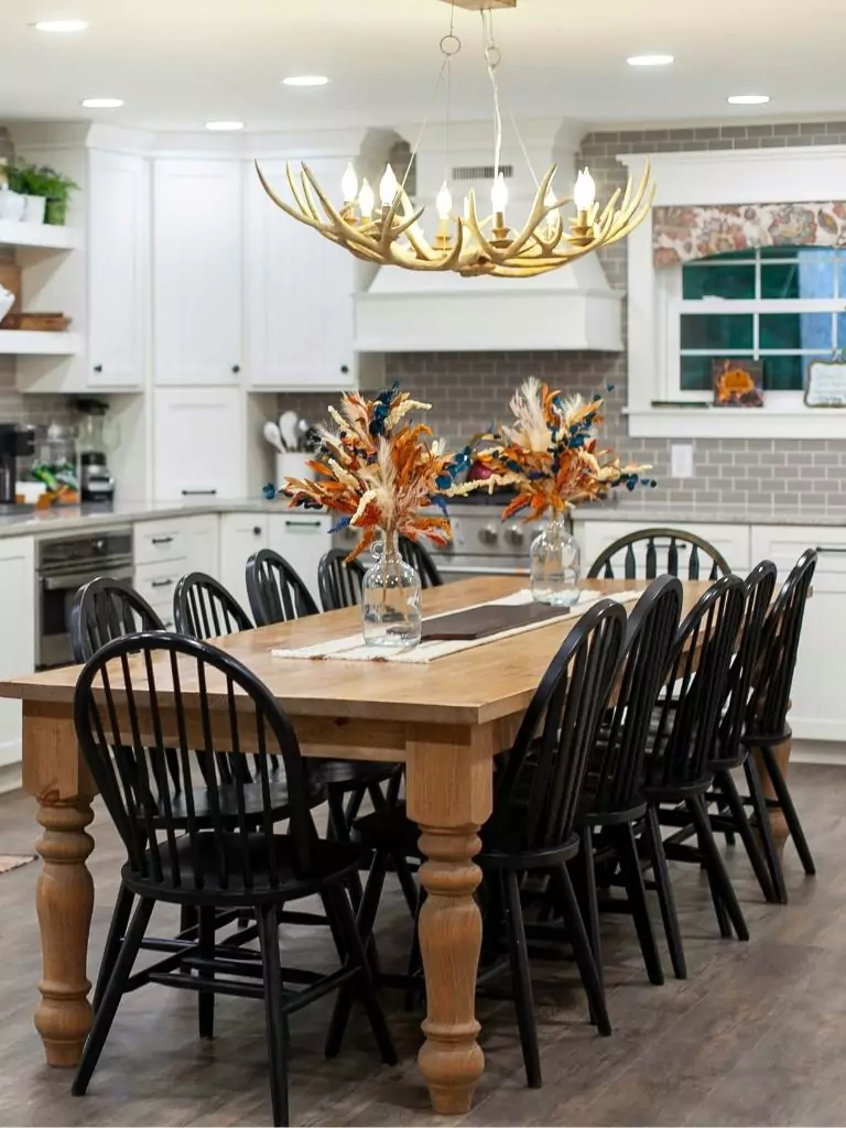 Decorate with a linen runner, antique candle holders, or seasonal florals. Pair with cross-back wooden chairs or bench seating to complete the cozy, lived-in feel.