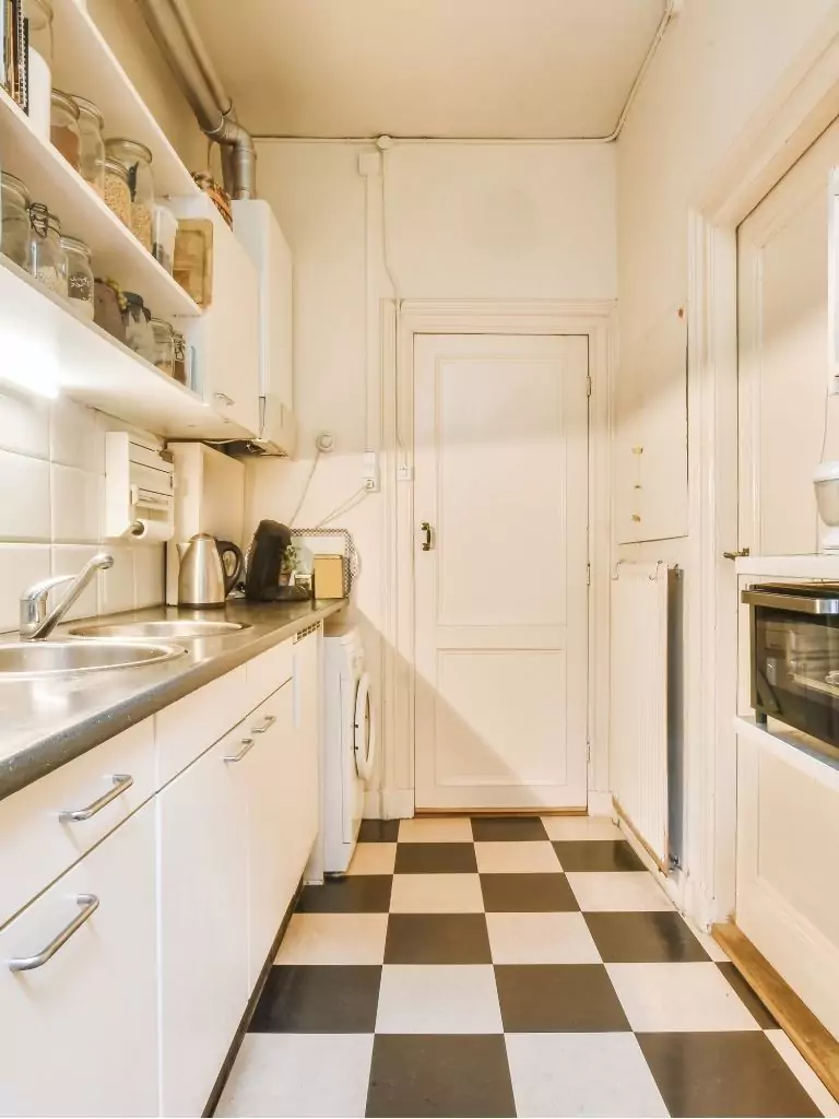 Checkerboard flooring is a bold and timeless element that brings instant vintage flair to any kitchen. Classic black and white tiles are a go-to for retro and mid-century-inspired designs, but warm tones like terracotta and cream can give off a softer, rustic charm that’s more fitting for farmhouse or old cottage kitchens.