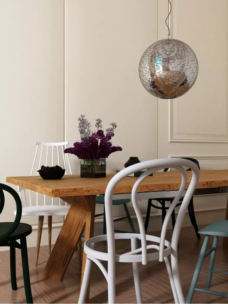 One of the easiest ways to achieve a collected vintage look is through mismatched wooden chairs around your kitchen or dining table. Opt for chairs of different shapes, sizes, and finishes, unified by a common theme—like all painted in muted pastels or distressed white.