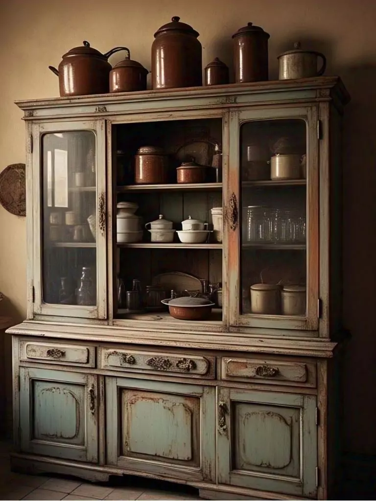 Look beyond typical kitchen cabinets and bring in repurposed vintage furniture pieces like old hutches, dressers, or armoires. These not only provide storage but also become standout design features that instantly elevate your vintage kitchen.